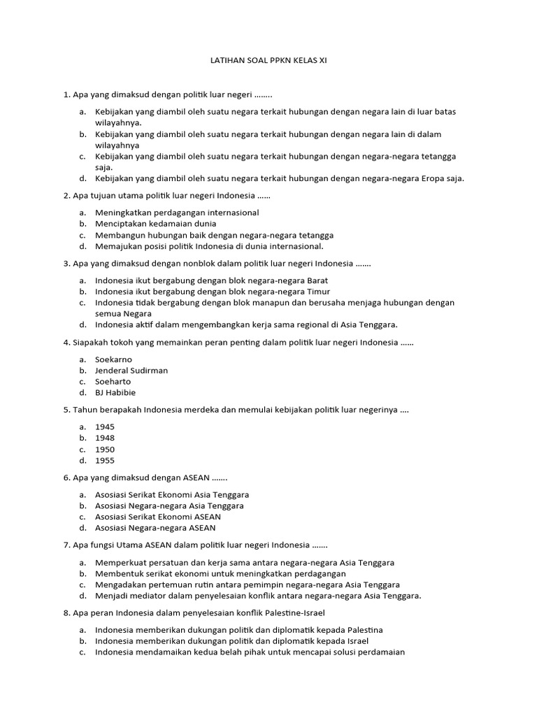 Pendidikan Pancasila dan Kewarganegaraan (PPKN) memegang peranan krusial dalam membentuk generasi muda yang berkarakter, berwawasan kebangsaan, dan memiliki kesadaran hukum yang tinggi. Di tingkat Sekolah Menengah Atas (SMA) kelas XI semester 3, materi PPKN seringkali berfokus pada pendalaman konsep-konsep fundamental yang berkaitan dengan negara, hukum, hak asasi manusia, demokrasi, serta peran warga negara dalam pembangunan bangsa. Untuk memastikan pemahaman yang mendalam dan kemampuan aplikasi materi, latihan soal menjadi salah satu metode pembelajaran yang paling efektif. Artikel ini akan membahas secara komprehensif mengenai pentingnya latihan soal PPKN kelas XI semester 3, jenis-jenis soal yang umum ditemui, strategi pengerjaan, serta contoh-contoh soal yang relevan.
