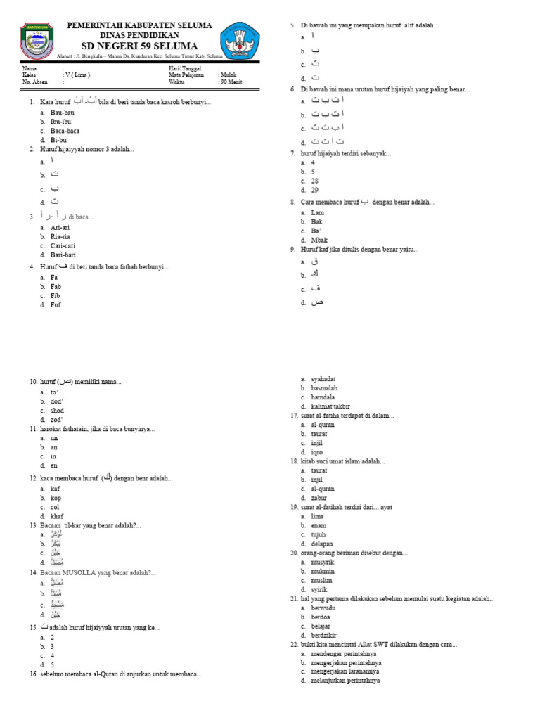 1. Pilihan Ganda: Siswa memilih satu jawaban yang paling tepat dari beberapa pilihan yang tersedia.